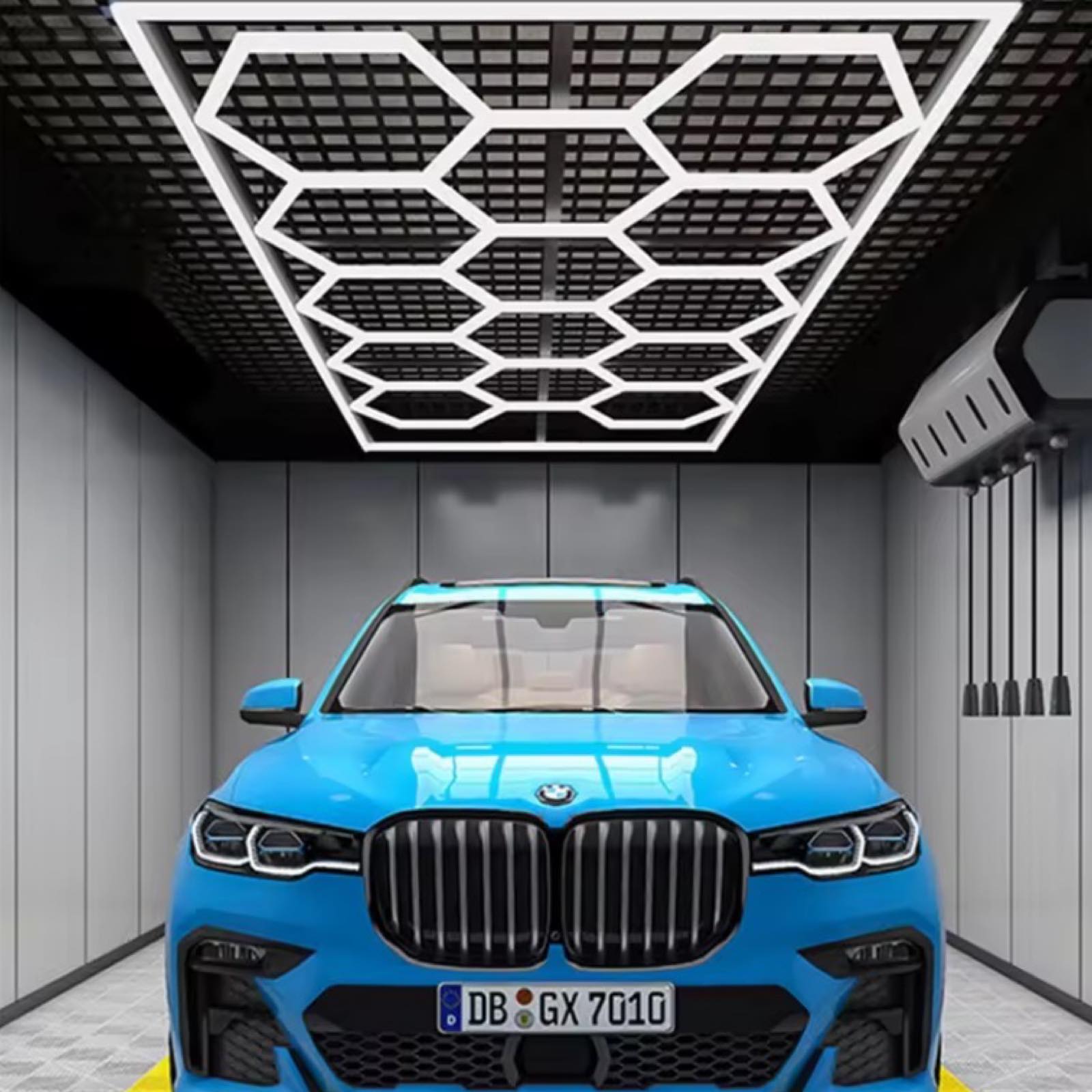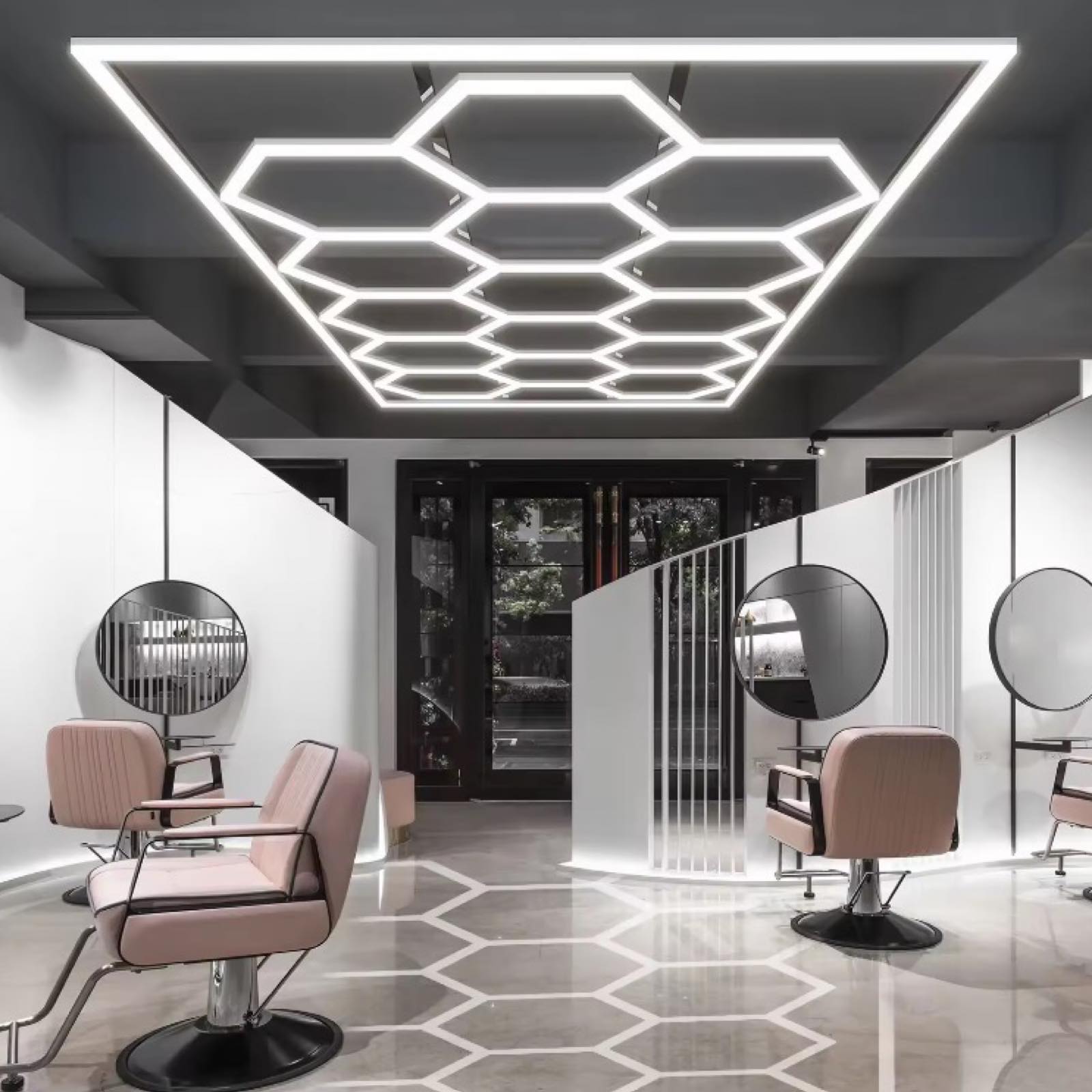 Modulär LED Hexagon Takarmatur, perfekt för att skapa en anpassad belysningslösning som passar just ditt utrymme. Denna innovativa armatur är utformad för att ge dig friheten att konfigurera ljuset efter dina önskemål, oavsett om det är i ett garage, en salong eller ett gym.